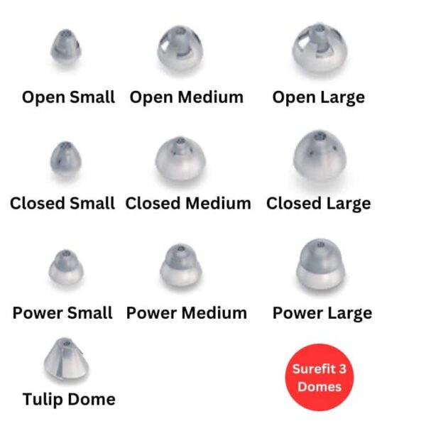 There are four different types of domes available for ReSound and Danalogic hearing aids, RIE Domes, Thin Tube Domes, Surefit 2 Domes and Surefit 3 Domes, and the type of dome you need to order depends on the type of hearing aid wire or tube that sits in your ear canal.